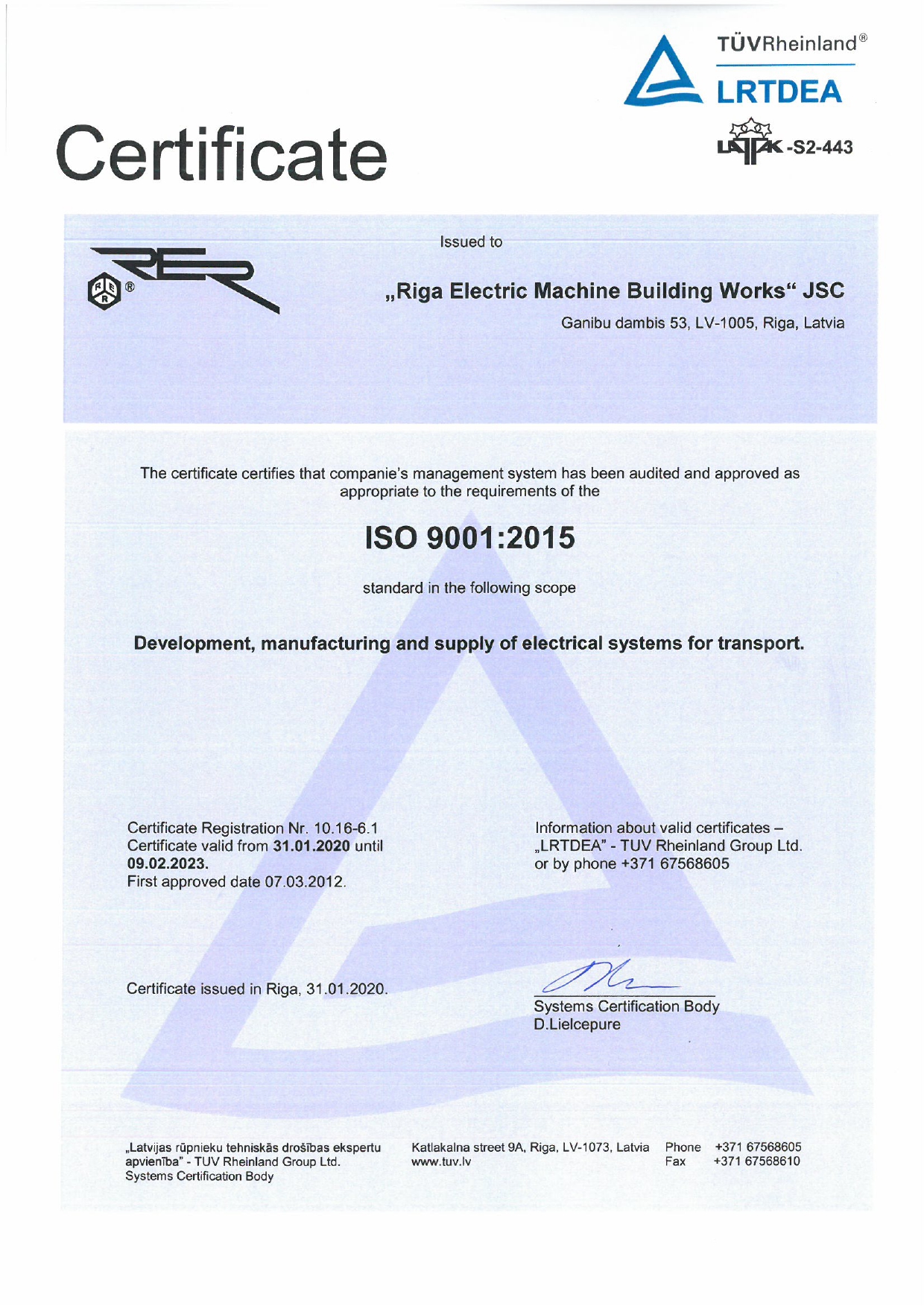 Mūsu integrētā menedžmenta sistēma ir sertificēta atbilstoši ISO 9001: 2015. Spēkā esošie standarti un noteikumi nodrošina visu procesu efektīvu darbību.