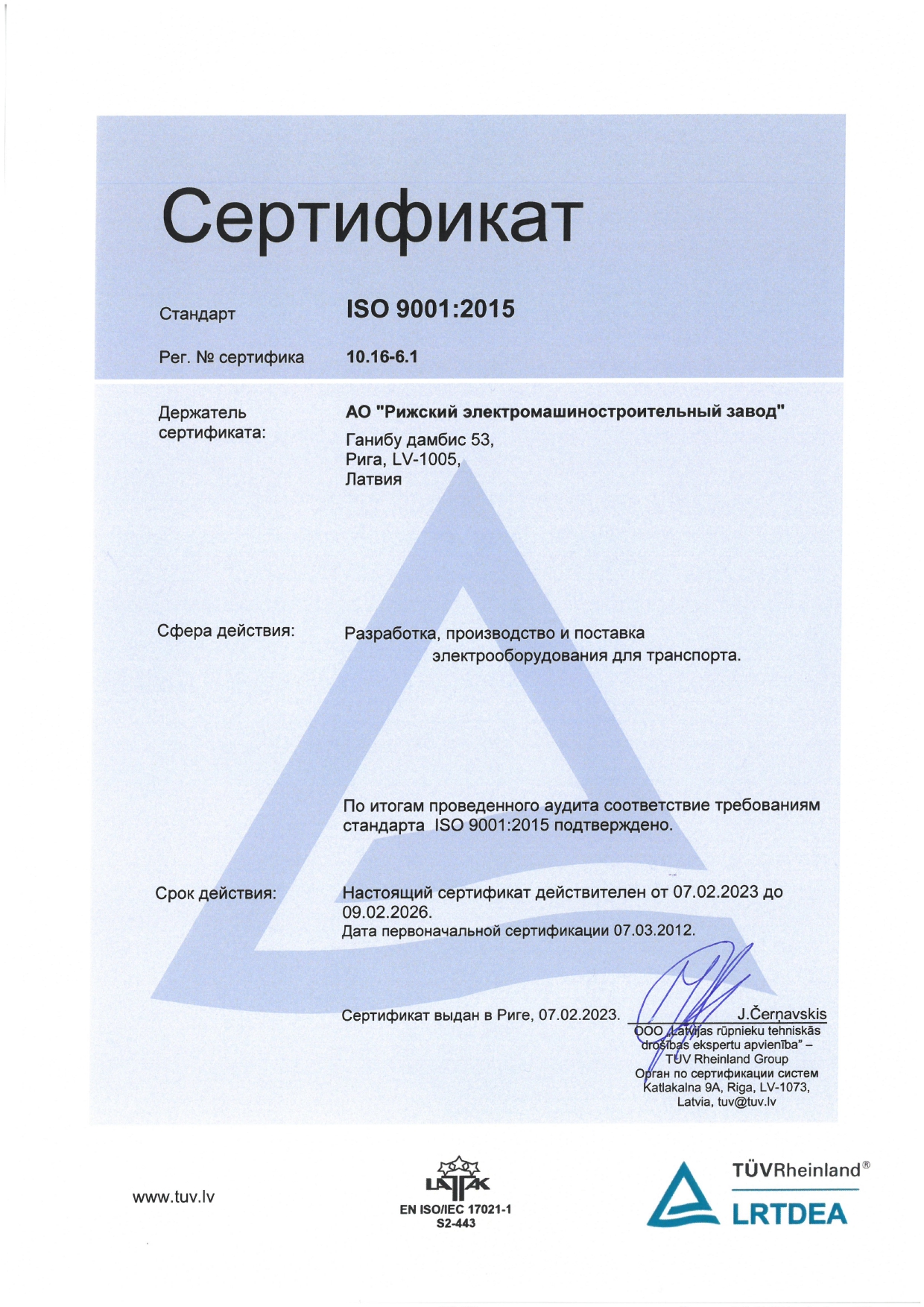 Рады сообщить, что наш завод получил новые сертификаты ISO в области разработки, производства и поставки электрических систем для транспорта. Команда RER успешно выполнила все требования, необходимые для того, чтобы доказать, что мы предоставляем продукты и услуги отличного качества, соответствующие высоким стандартам.